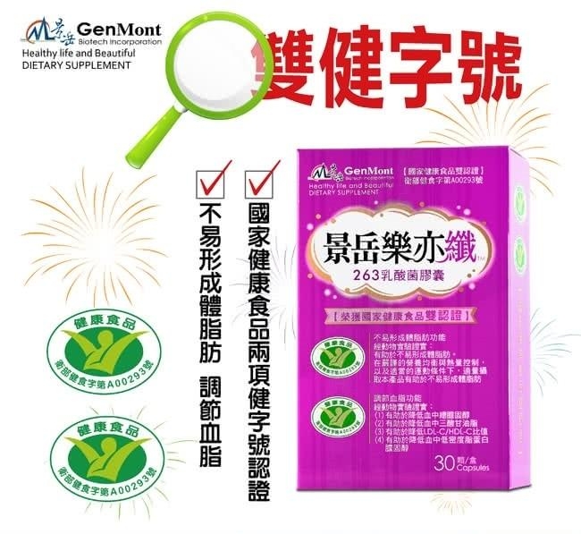 景岳樂亦纖乳酸菌膠囊 健康食品(降體脂降血脂雙健字號)