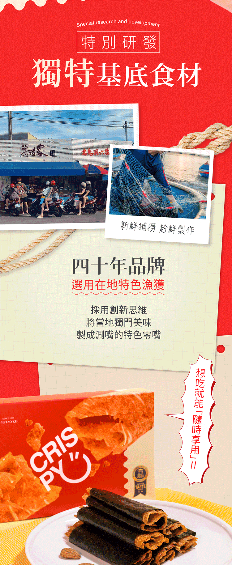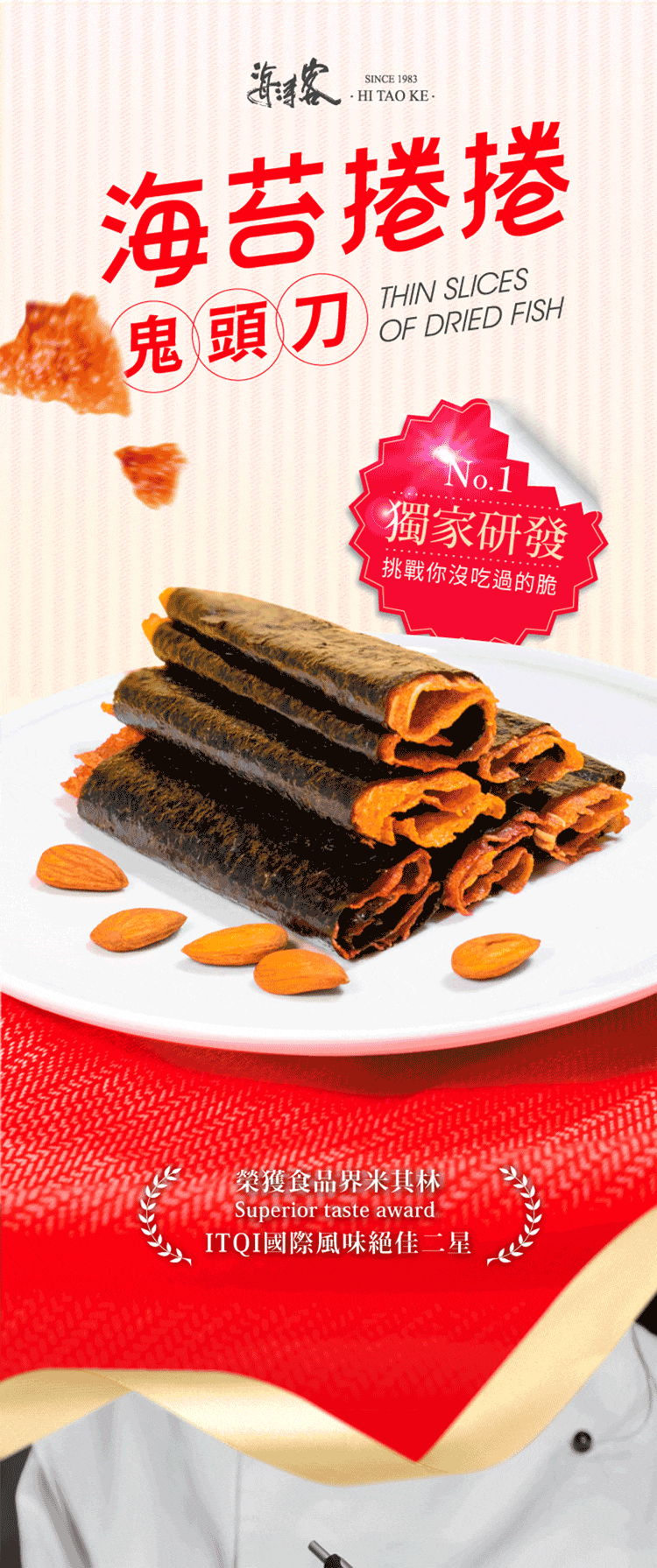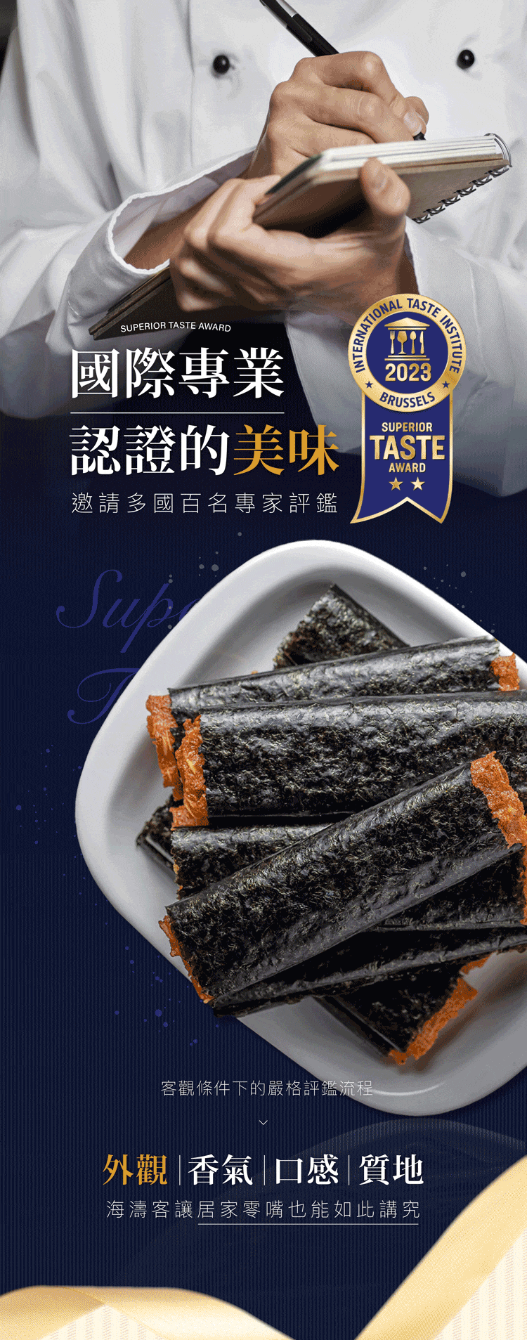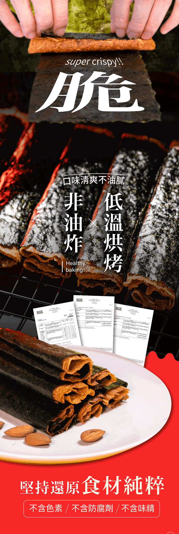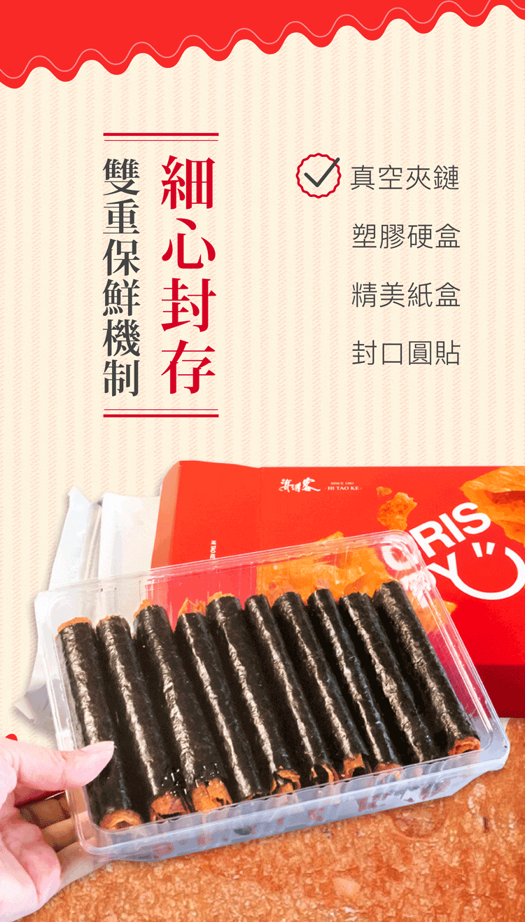 以純手工外層捲上海苔,喀、滋、脆的創新口感!