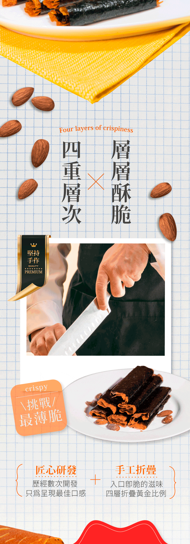 薄脆口感不管是小孩與長輩都能放心品嚐喔!