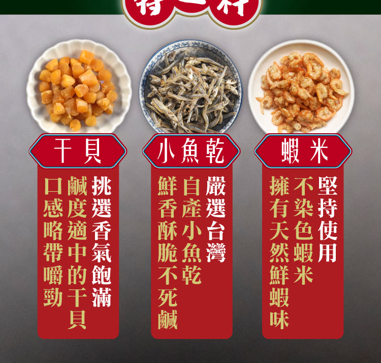 特選三鮮『小魚乾』『干貝』『蝦米』當基底