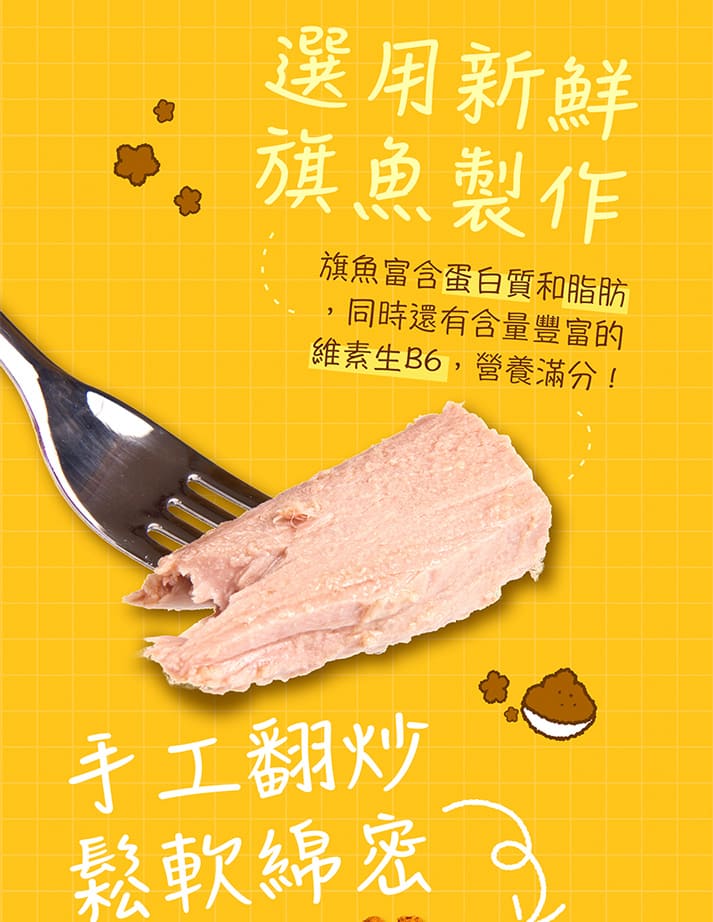 營養滿分的午茶點心,使用新鮮旗魚製作而成,鬆軟綿密,一抿立即化開,每口都是旗魚的香甜