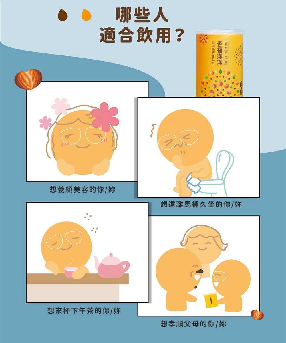 - 享嘉杏仁茶特選杏仁豆,製作過程衛生安全,食用方便適合早餐、宵夜點心,開水一沖即可享受的滋補茶點。