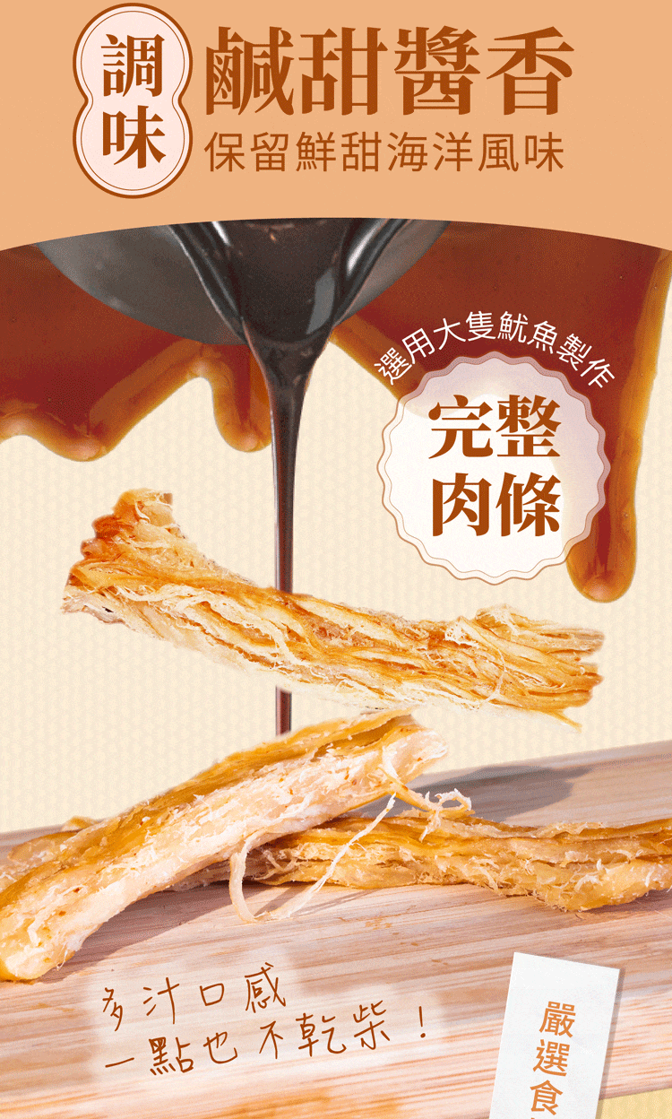 有別於一般魷魚絲的口感~滿足你大口撕咬的快感!