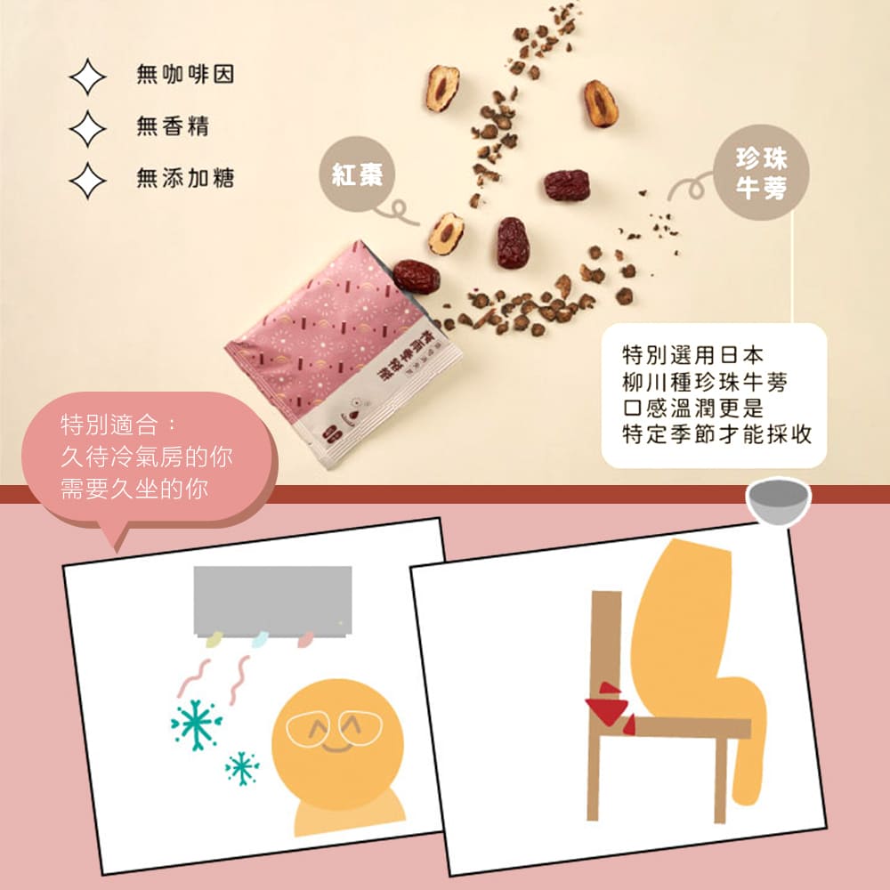 為了隔天小周末的約會可以亮麗登場,也為了久坐在冷氣房的自己,星期四這天就泡一包梅雨季掰掰吧!1包可以泡1L呦!