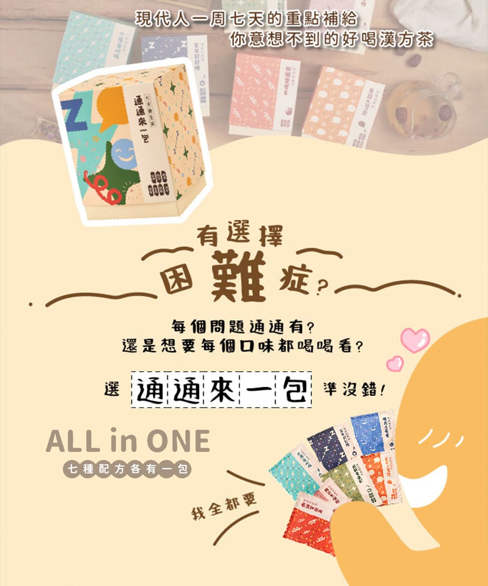 有選擇困難症?每個問題通通有?還是想要每個口味都喝喝看?選通通來一包準沒錯!