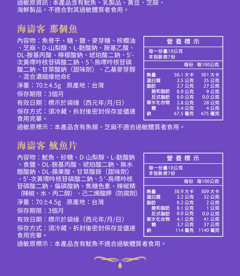 本產品含有過敏原,請詳讀商品資訊