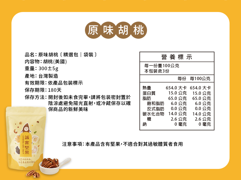注意事項:本產品含有堅果,不適合對其過敏體質者食用。