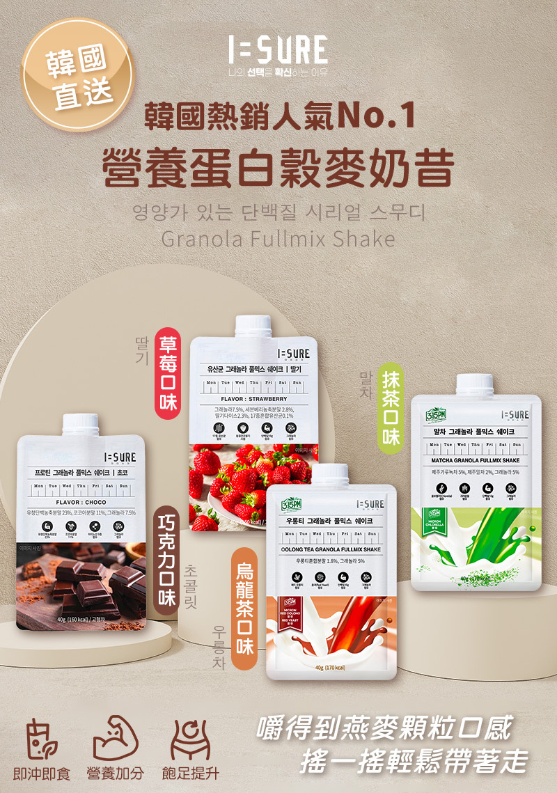 【I=SURE】韓國直送 全方位營養蛋白穀麥奶昔|2款任選 售價 230 元 特價 129 元