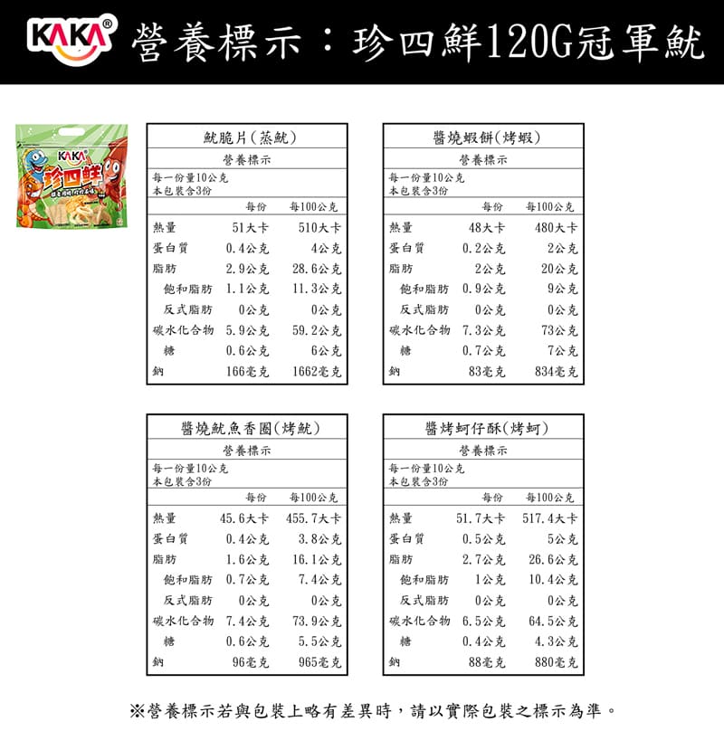 品名:【KAKA】珍四鮮 冠軍魷