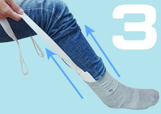 3透過二端的長拉繩,可方便地將襪子穿起。有關節炎或彎腰有困難者,皆可輕易自行穿襪。