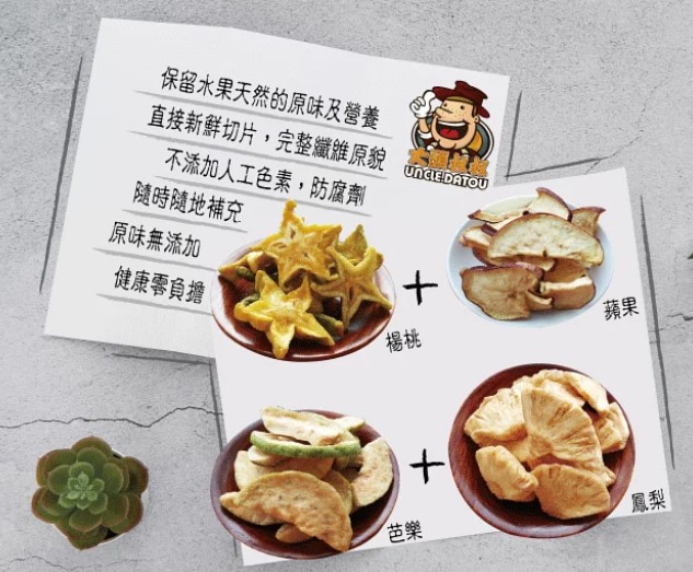 ★內容:蘋果脆片,鳳梨脆片,楊桃脆片,芭樂脆片。