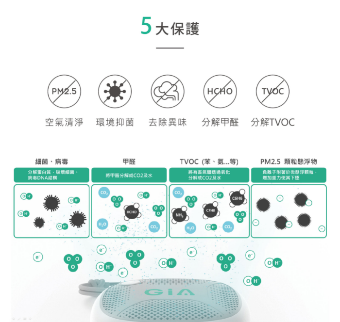 3.分解細菌病毒、甲醛、TVOC、PM2.5
