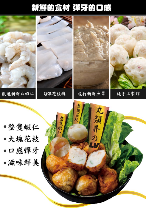 狂銷萬包,真材實料,巨大規格您一定沒見過也沒吃過,用料超級實在,整隻蝦仁,整塊花枝,一口咬下,多層口感,絕無添加防腐劑,漂白劑,堅持純手工製作,每天只產500顆。嚴選新鮮魚漿,搭配無漂白、無澎發的蝦仁及金沙製成,炸成金黃色,一口咬下外酥內軟,金沙的香氣在嘴裡漫延開來,多層次的口感讓人讚不絕口,大人小孩更是愛不釋手喔!