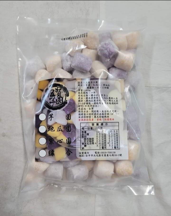 品項:綜合包(內含:芋圓、地瓜圓、紫薯圓)