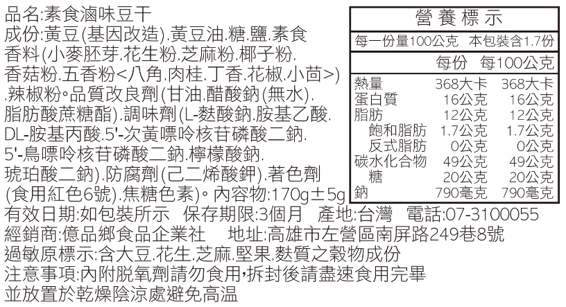 億品鄉素食滷味豆干170g/嘗鮮價90元