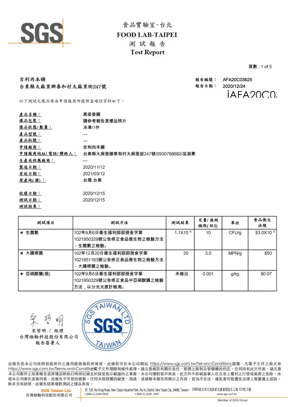 保存條件及期限(指未拆封):0°C以下冷凍保存70天