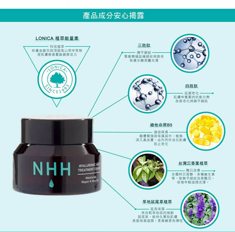 以NHH獨有專利LONICA植萃能量素輔以頂級胜肽之經典力作。