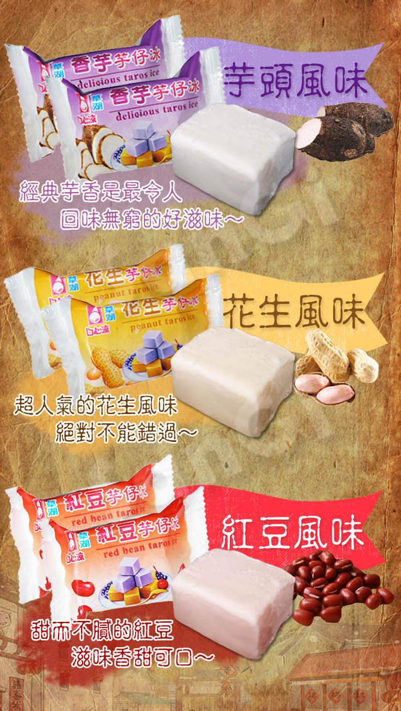 口味:芋頭/花生/紅豆/百香果/梅子/鳳梨