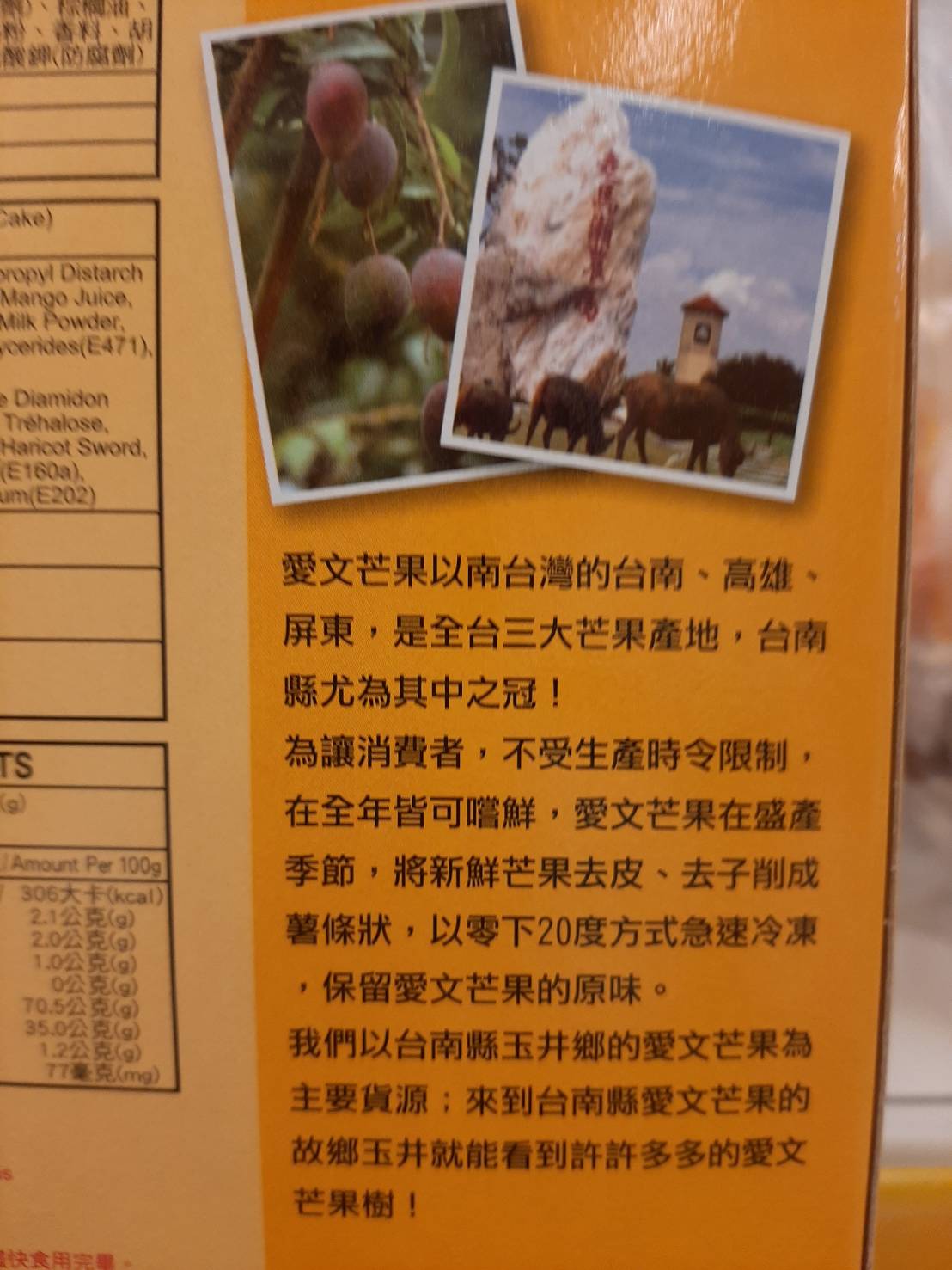 為讓消費者,不受生產時令限制,在全年皆可嚐鮮,愛文芒果在盛產季節,將新鮮芒果去皮、去子削成薯條狀,以零下20度方式急速冷凍,保留愛文芒果的原味。