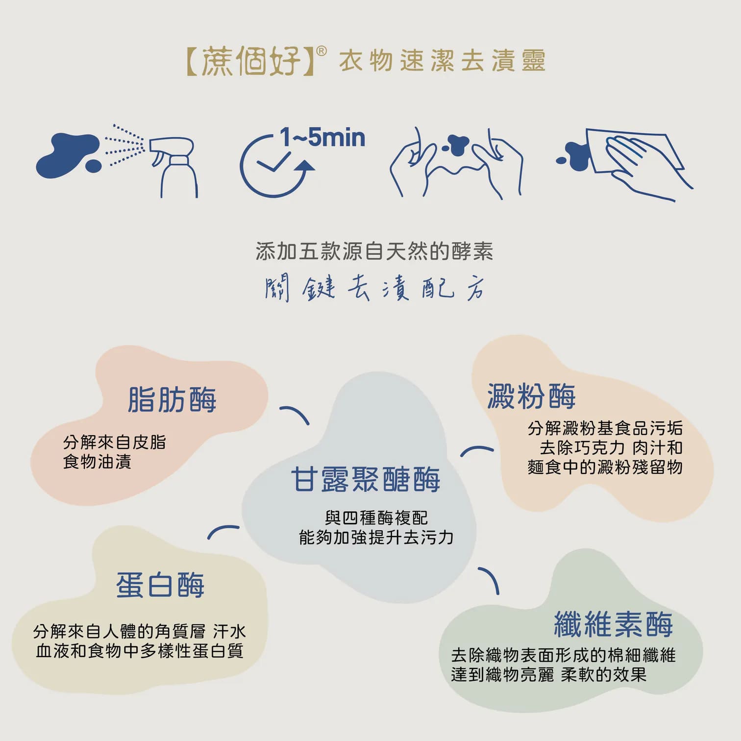 溫和獨特酵素配方 輕鬆去除頑強污漬!