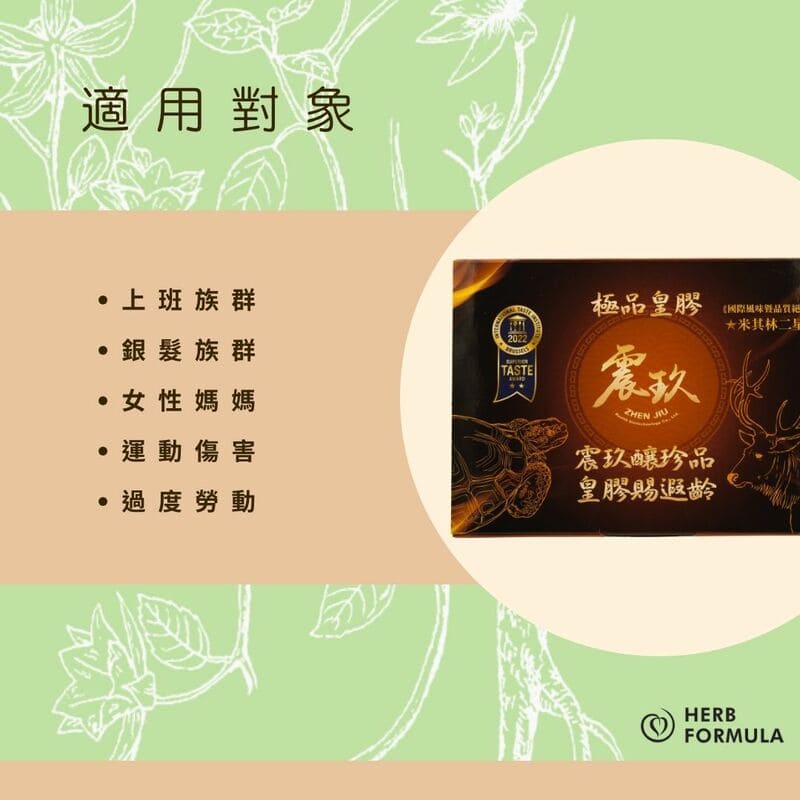 內容物 成分:全龜、鹿角萃取物、膠原蛋白、枸杞子、黃精、人蔘花、紅棗
