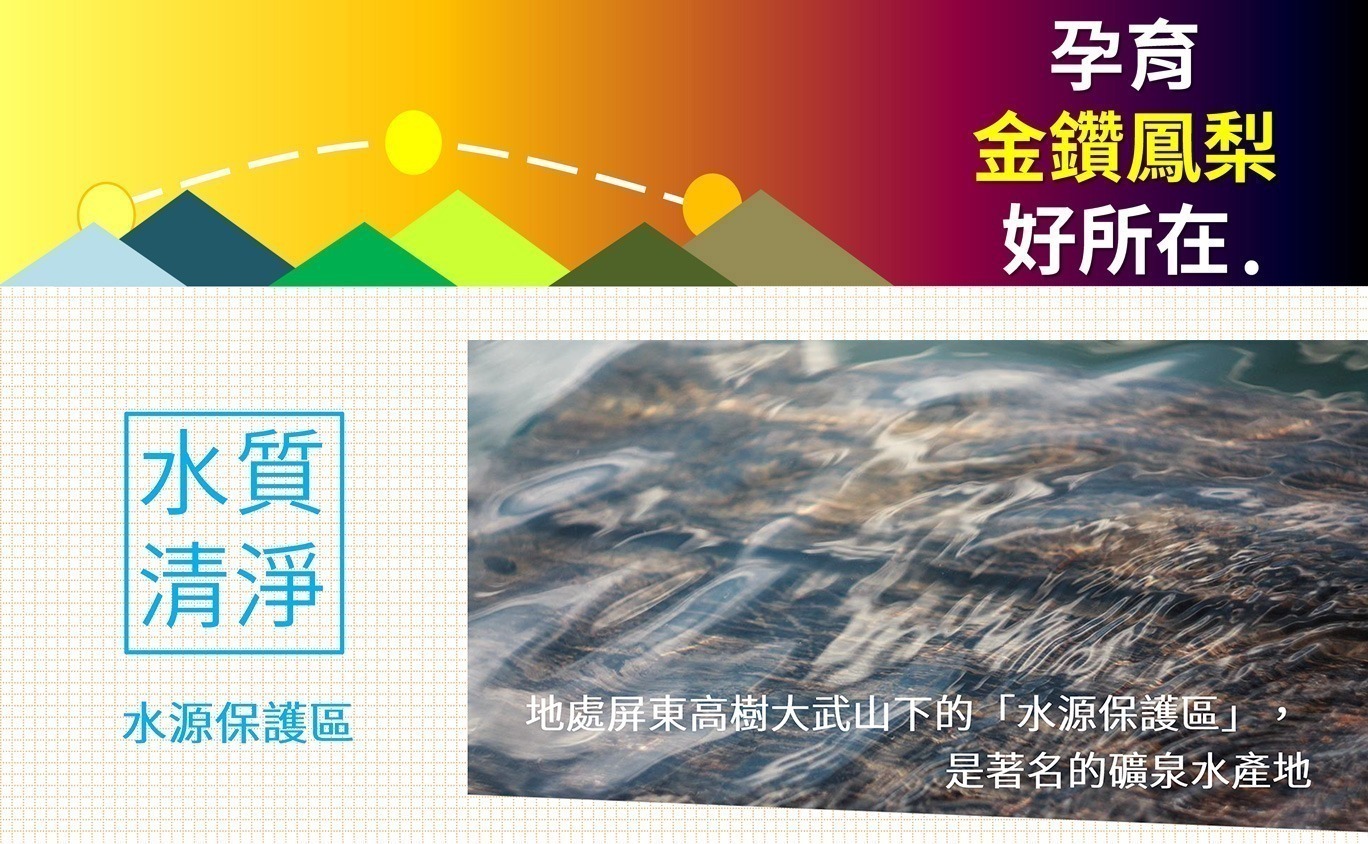 ★優質水源:地處屏東大武山下水源保護區。