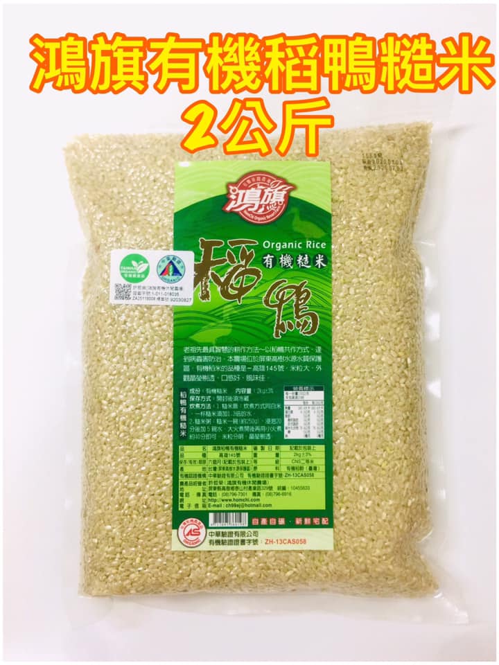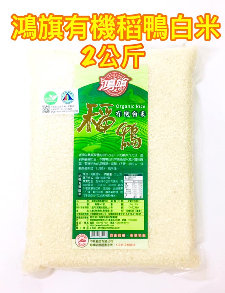 有機栽培出無「鴻旗稻鴨有機米」與稻鴨合作,以鴨子的天然習性提供多項田間作業,產品有取得有機農產品認證,慈心認證與CAS認證,生產出優質的「鴻旗稻鴨有機米」。