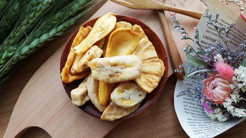 ★綜合水果內容:香蕉脆片、菠蘿蜜脆片、芭樂脆片、鳳梨脆片。